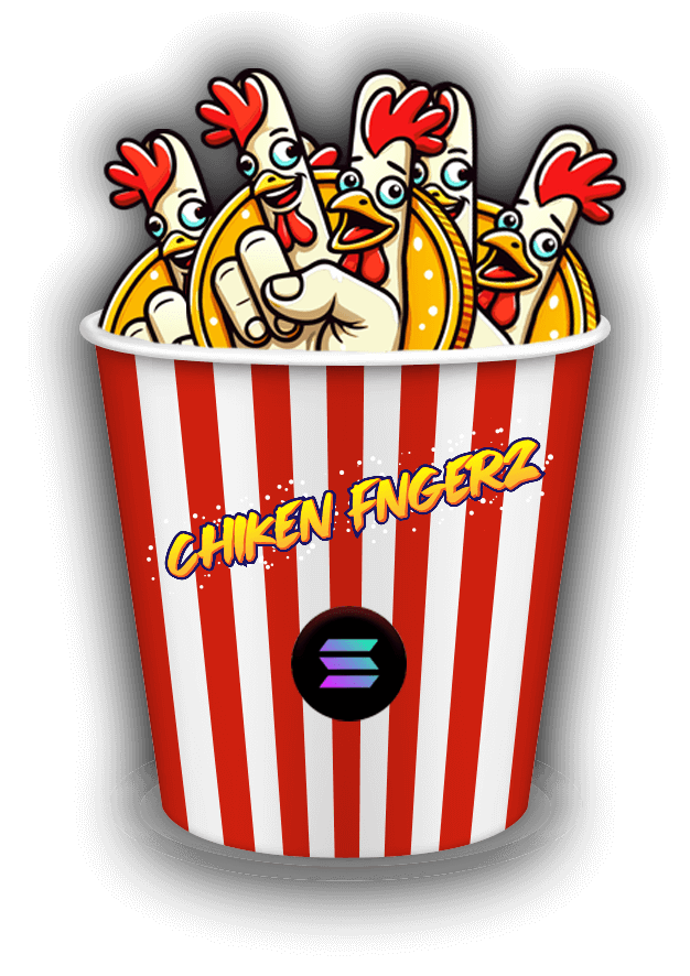 Born from the ashes of rug pulls and pump-and-dumps, Chiken Fngerz is a movement — a finger-lickin’ army of degens who believe that if you can’t beat the market, deep fry it. Every holder becomes part of the The Coop, spreading fngered memes and collecting $FNGRZ one crunchy bite at a time.